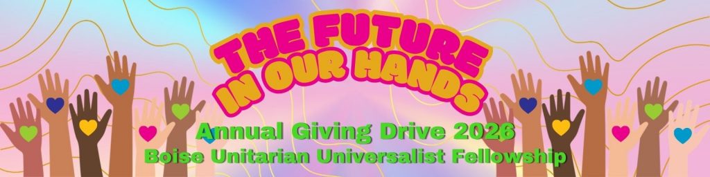 No. Many of us are members of KBSX, the ACLU and other organizations; but BUUF membership is different. Members and friends rely on the fellowship to provide worship and religious education for us and our families. Additionally, we count on the fellowship to be here for us in other intensely personal ways: when we celebrate, when we grieve, and when we work for justice. Boise UU Fellowship strives to build a Beloved Community which supports us throughout our lives. The Annual Giving Drive is the time of year when we ask that you consider what financial support you will offer the fellowship to sustain our home and our important work.
